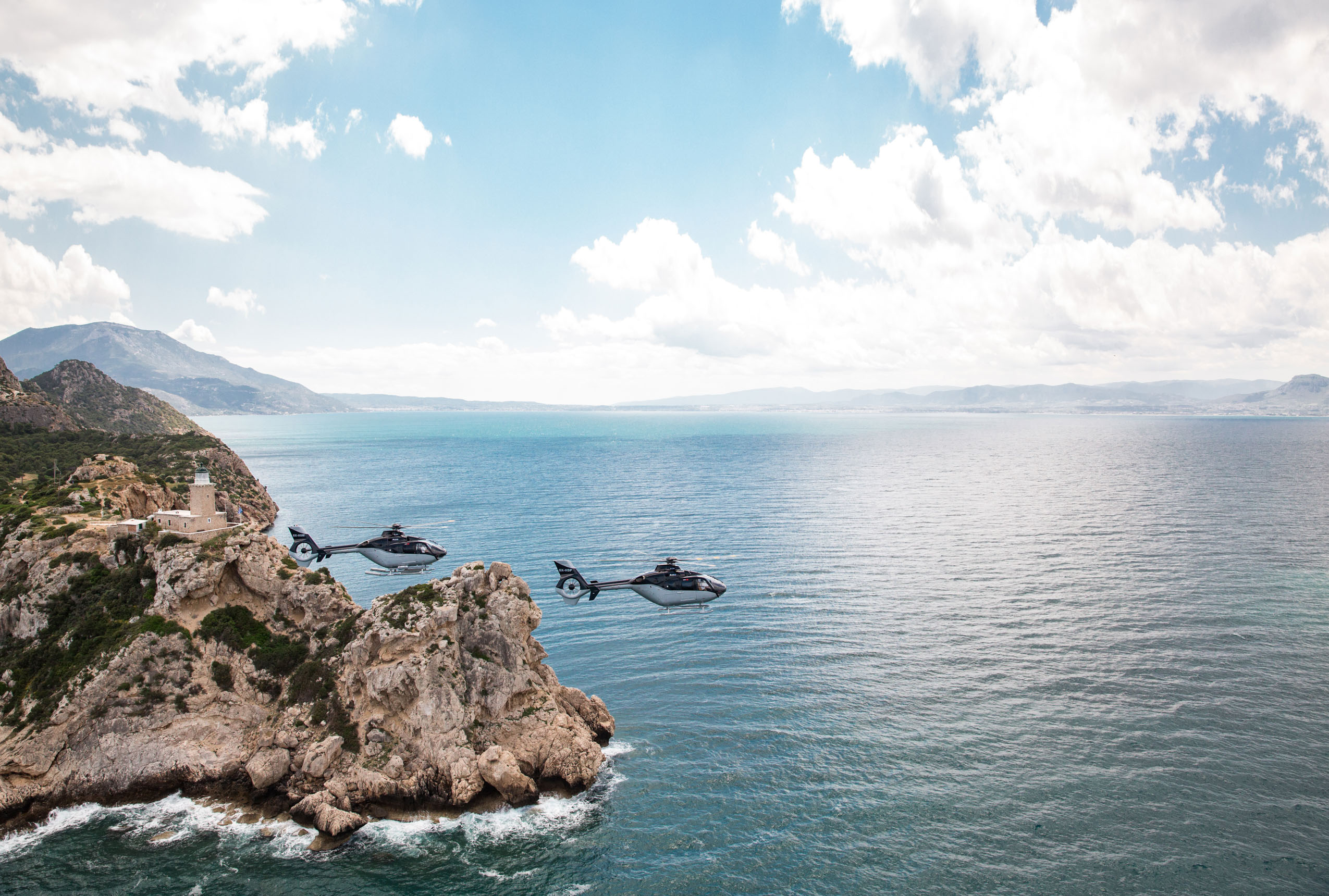Take to the skies on a breathtaking helicopter ride and marvel at the endless blue expanse of the Aegean and the Cycladic islands beyond.