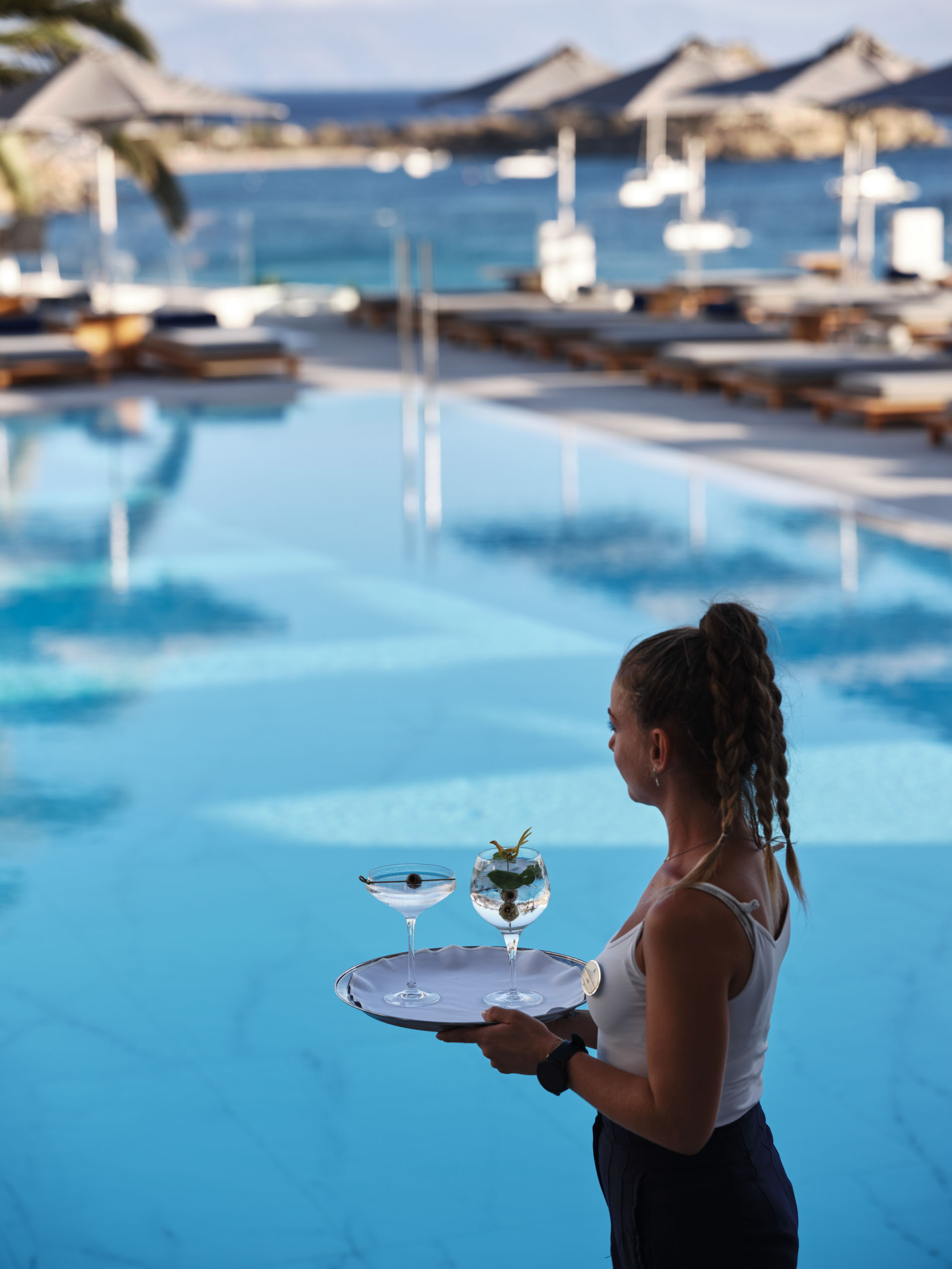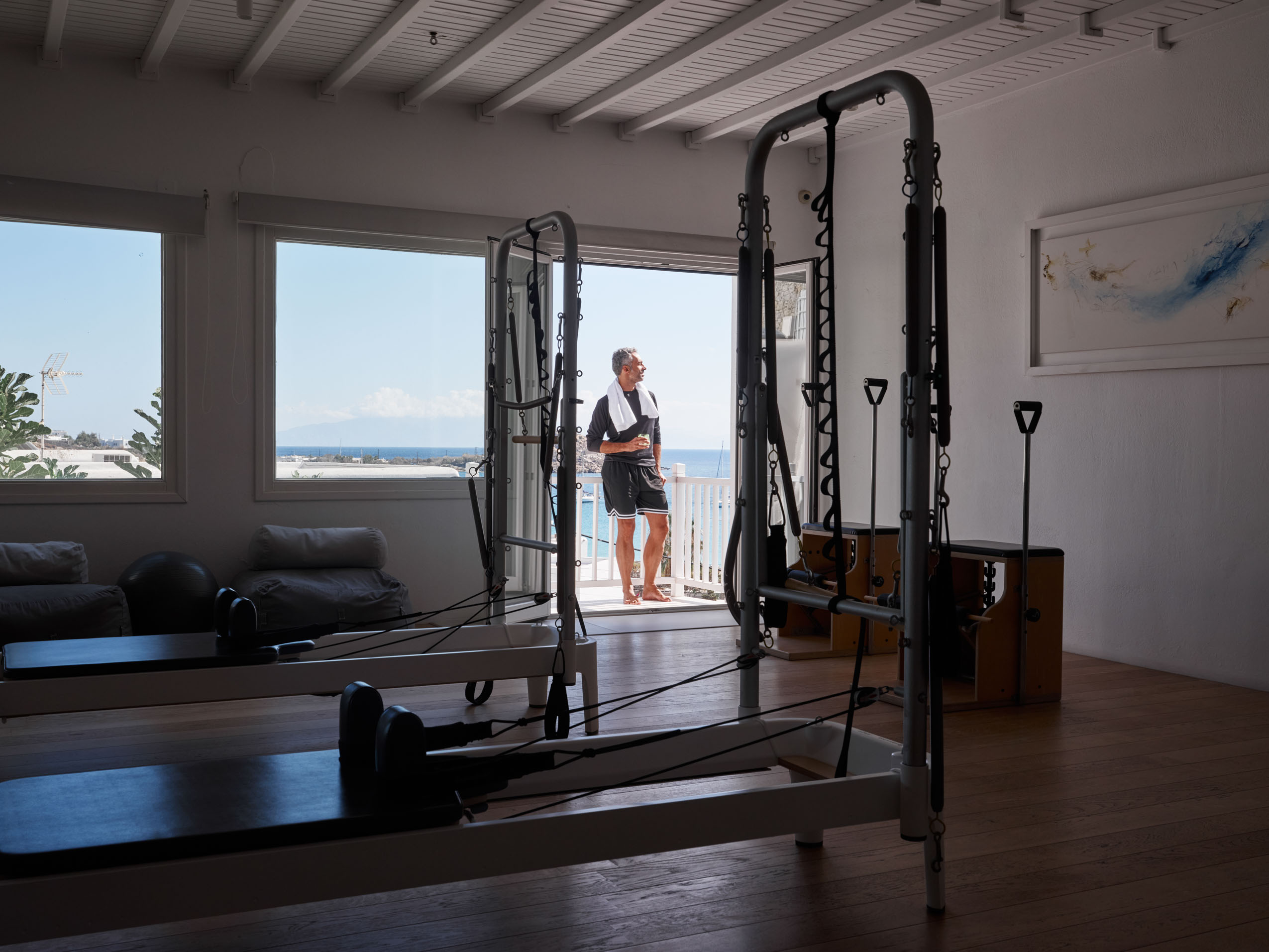 Our state-of-the-art Fitness and Pilates Studio features a full range of gym equipment, along with a Pilates Reformer, Combo Chair, and Tower Unit. Private yoga sessions are available in the gym, but our instructors also offer unique experiences—like secret sunrise, full moon, or sunset yoga paired with meditation on Rhenia, a protected nature reserve accessible by private boat. Enquire at Guest Services for more details